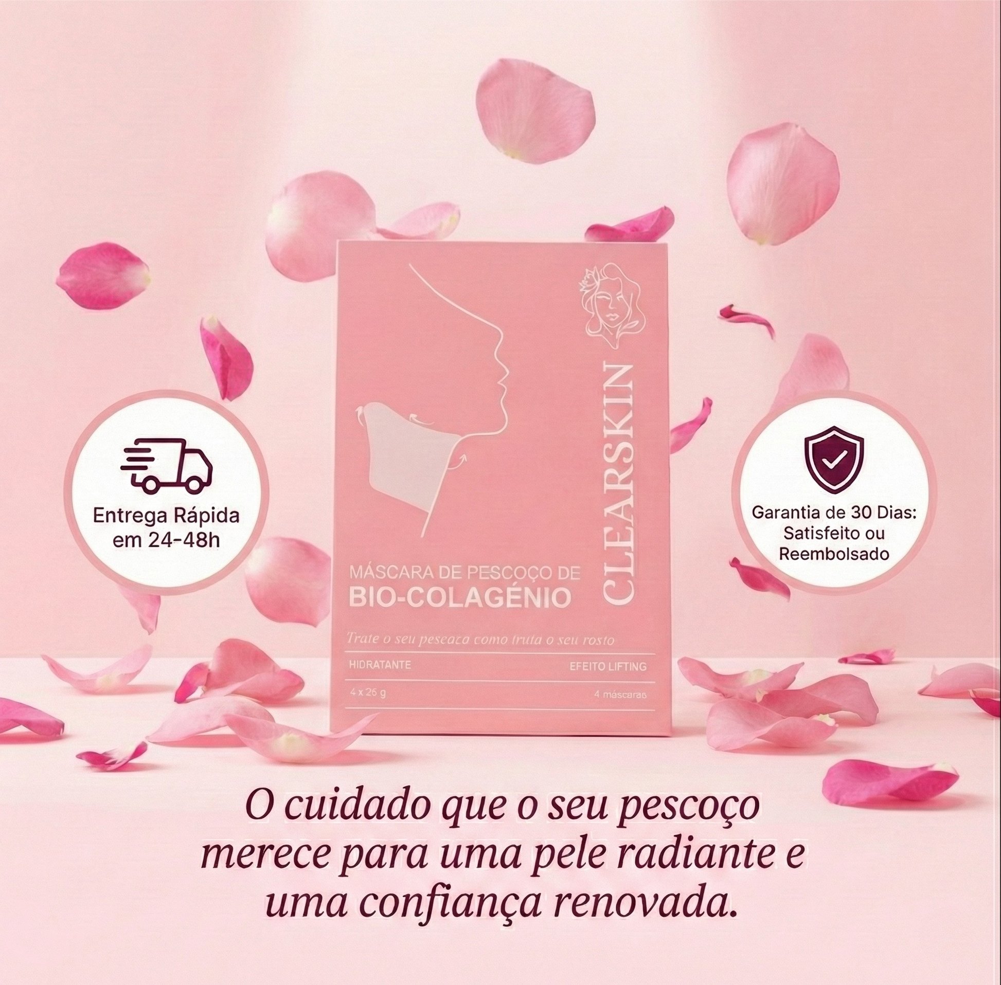Melhoria visível na elasticidade. O tom de pele torna-se mais uniforme, a textura fica mais macia e o pescoço ganha uma firmeza natural.