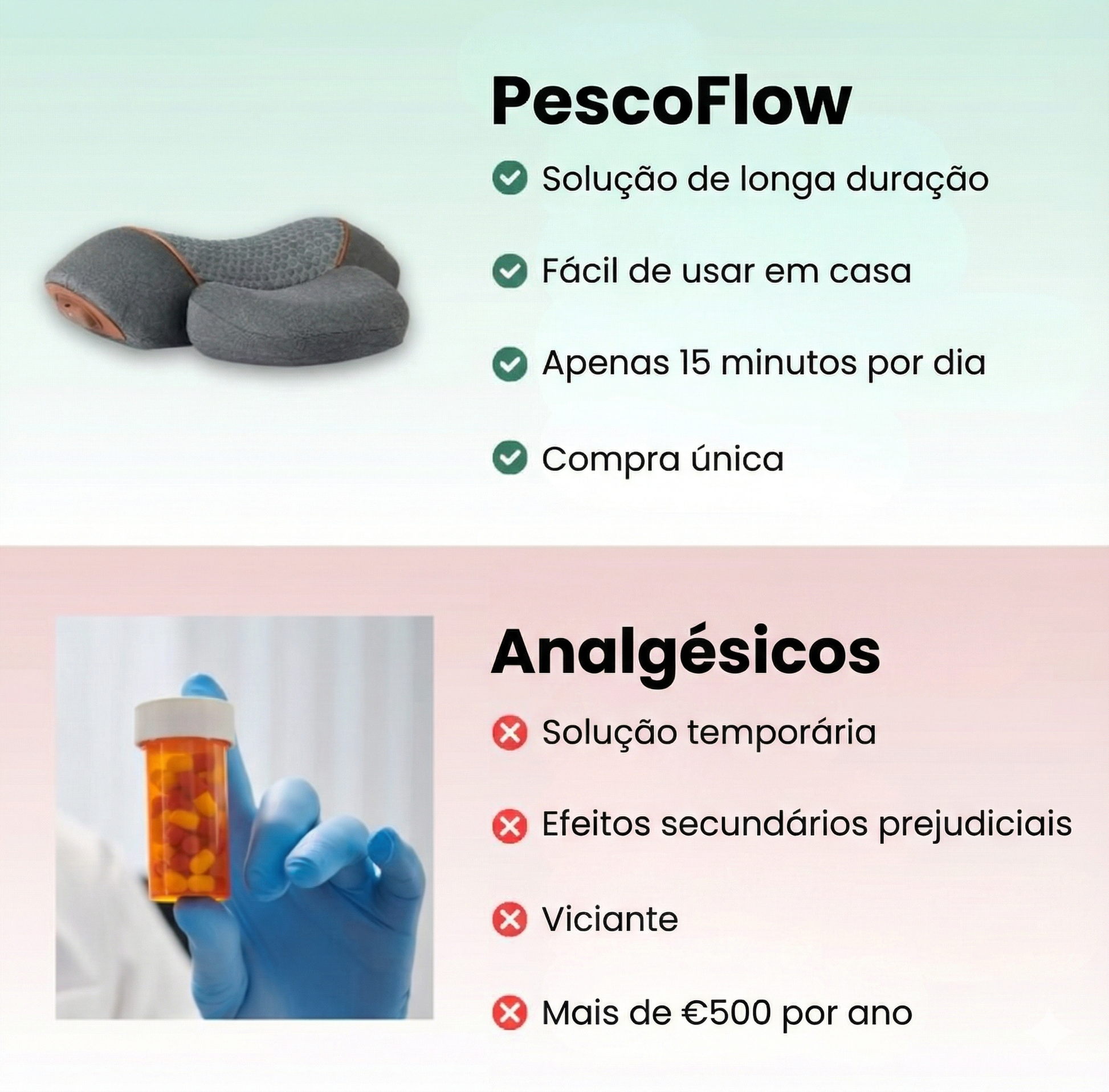 Segundo os fisioterapeutas, um plano de tratamento normalmente requer 5 a 7 sessões. O custo pode rapidamente chegar a 2 300 € ou mais para um tratamento completo. Isso é mais de 25 vezes mais caro do que o nosso PescoFlow, especialmente agora que está em promoção por tempo limitado.